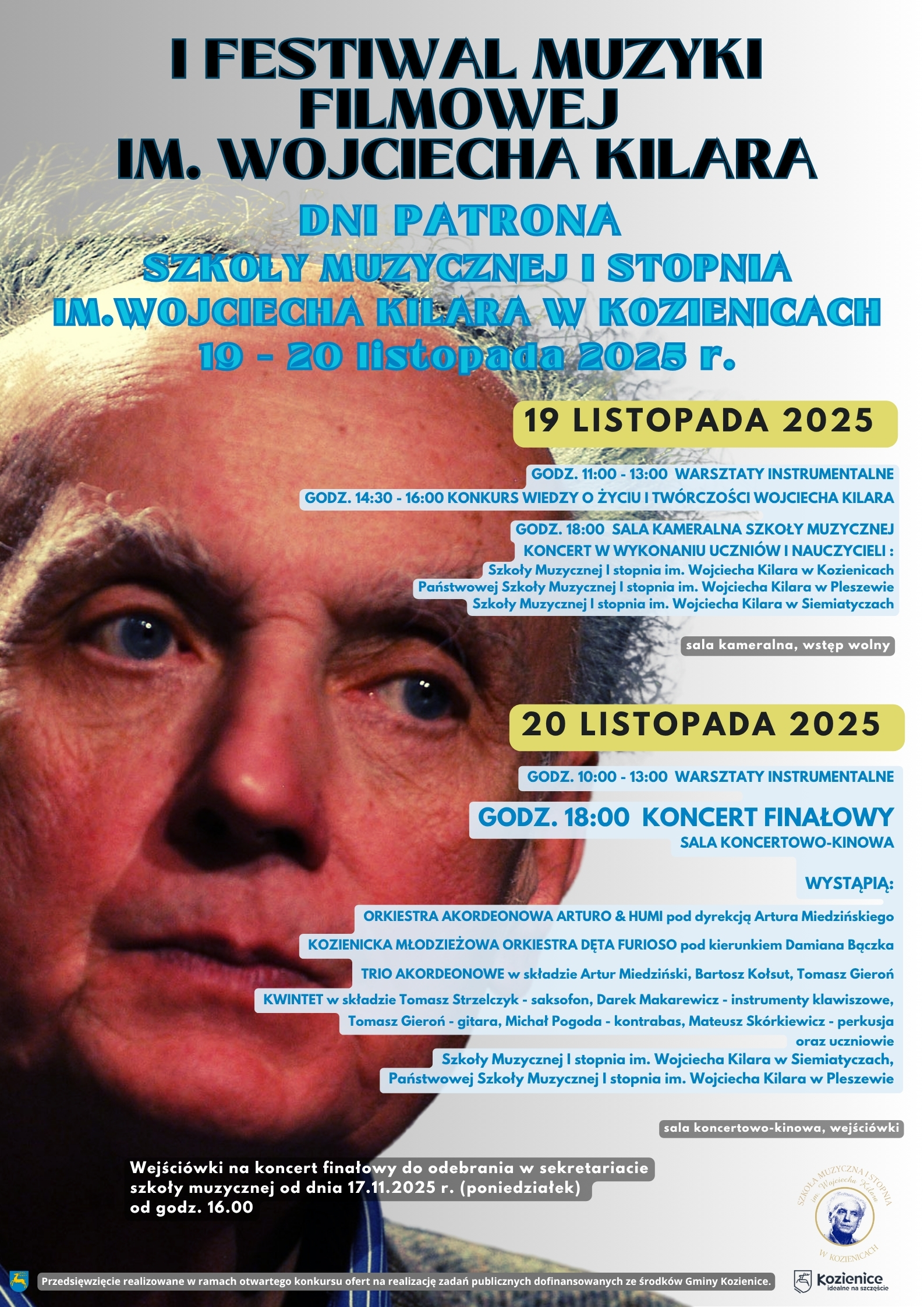Drukuj Powrót do poprzedniej strony I FESTIWAL MUZYKI FILMOWEJ im. Wojciecha Kilara 28.10.2025 7:18 Treść